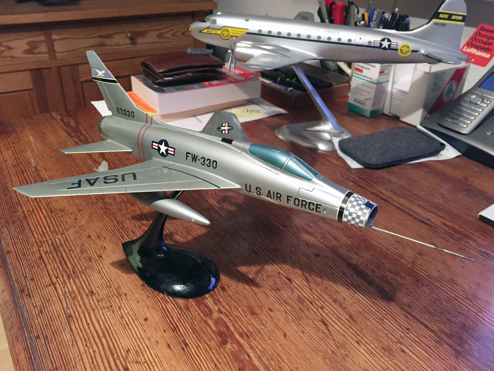 During the 1960s, Nemoto Models of Japan employed highly skilled model makers to produce highly detailed hand made models in wood and resin in various scales. Apparently many US servicemen station in Japan in the 1960s had Nemoto make models of the military aircraft they flew, and the Super Sabre pictures below is one such model.
