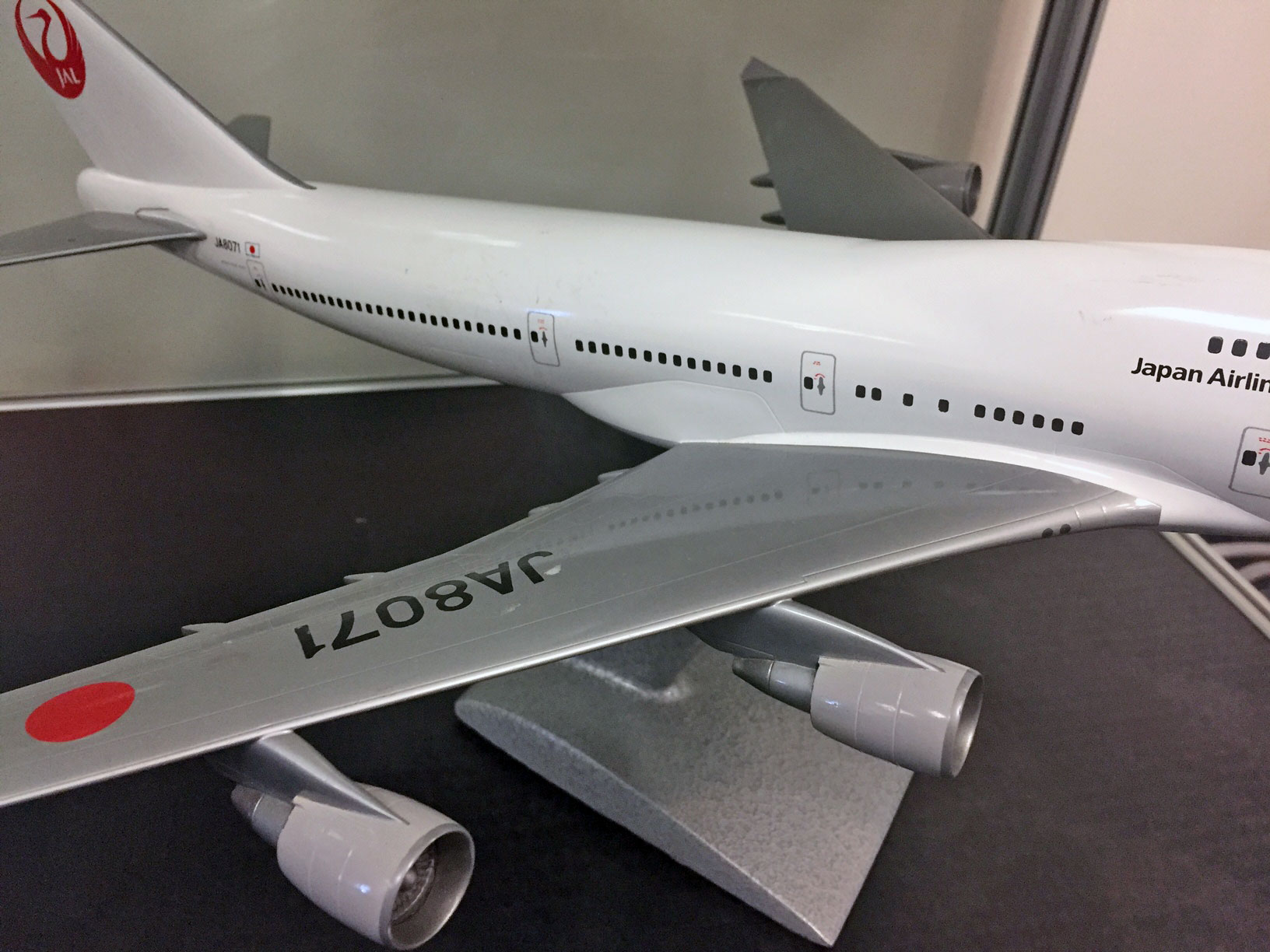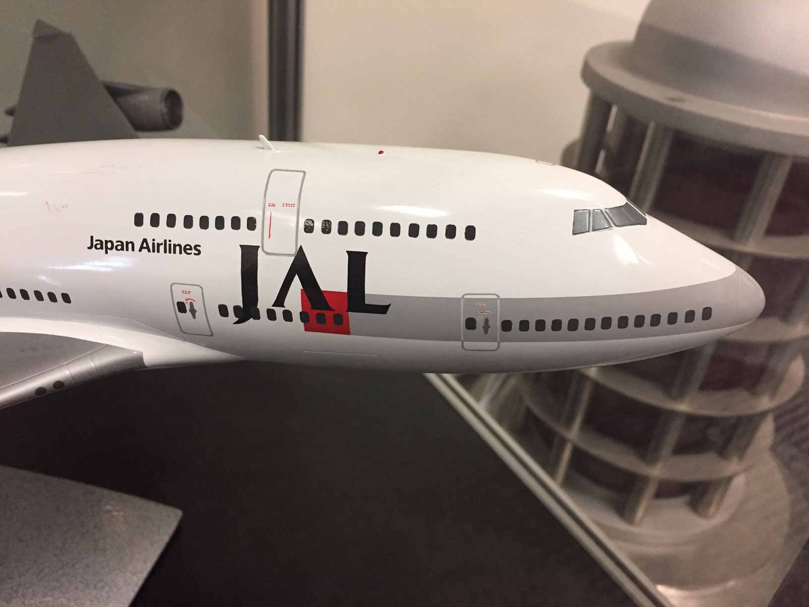 Here are some detail pics of a 1/144 scale (I think) JAL 747-400 that is on display at the LAX aviation museum.