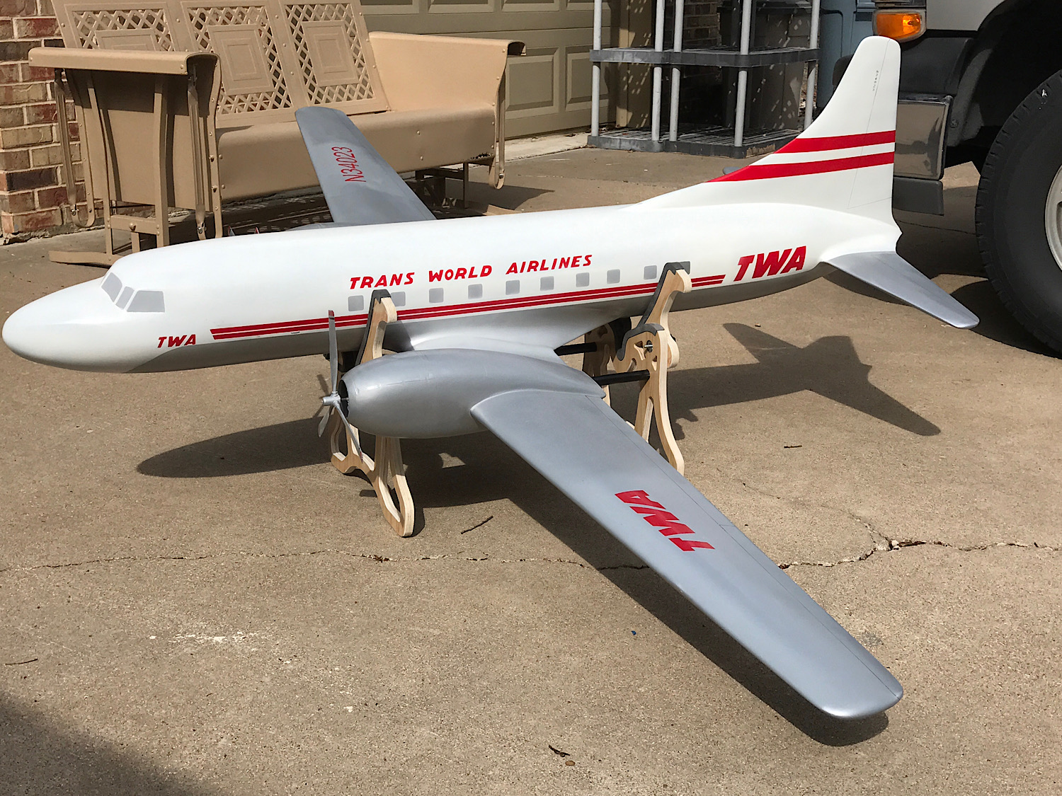 I built this Convair for a local trade school. It is 1/15 scale all-fiberglass with 3D printed props. Although TWA never had them the colors look good on the 440!