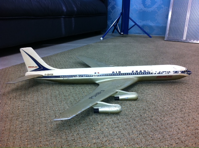 In this posting you can see the original state of the model in the Air France livery. The engine needed to be welded back on as well. You can also see the model after being repainted into the silver and white.