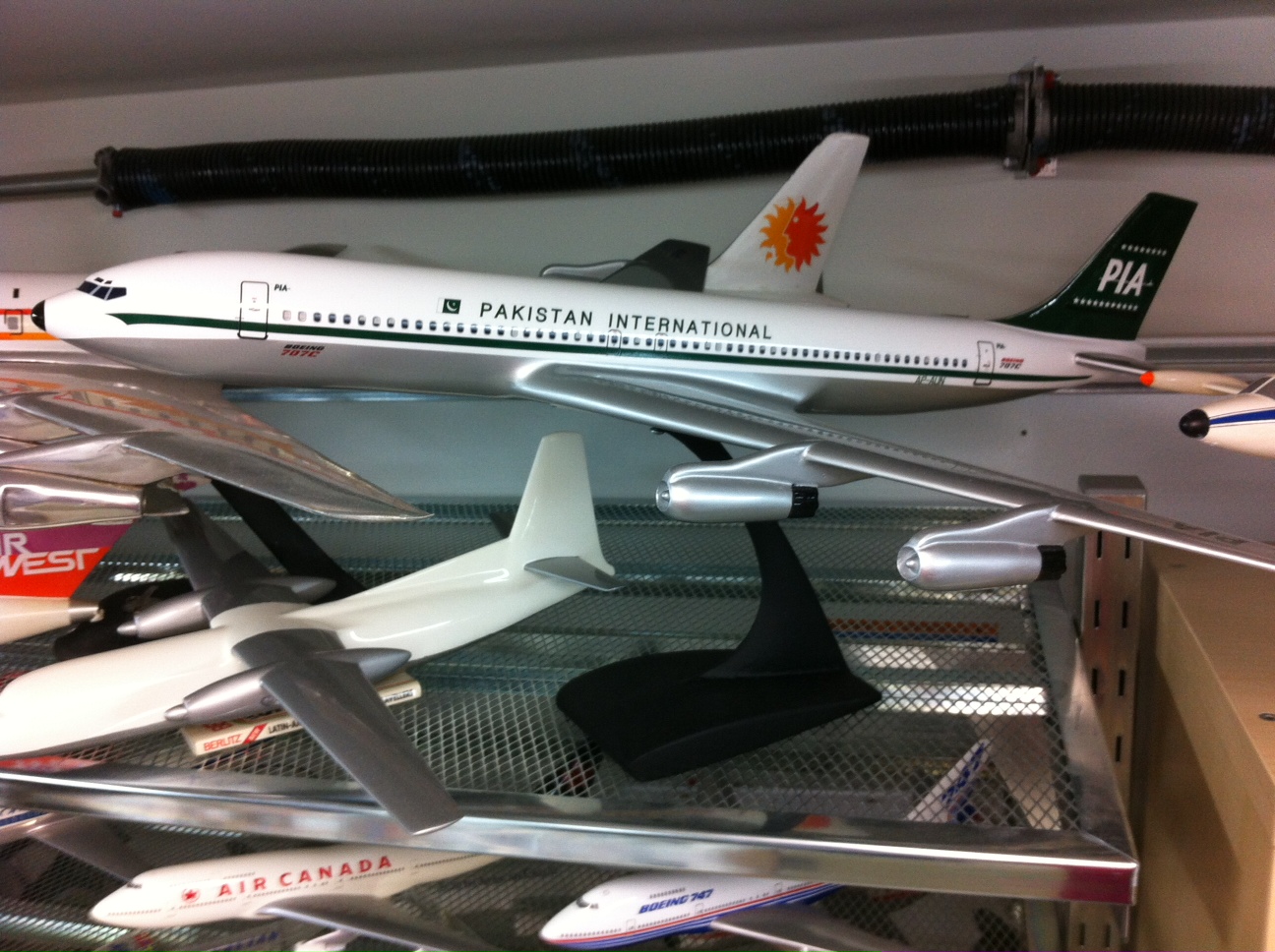 My interest in airliner display models goes all the way back to 1964, when my first flight experiences aboard a Pan American Boeing 707 and a Pacific Northern Airlines (PNA – “the Alaska Flag Line”) Boeing 720 created a life-long fascination with the first generation jetliners. I was ten years old at the time, and paid a daily visit to the Pan Am and PNA ticket offices in downtown Juneau, Alaska, where I spent many hours admiring the very large scale 707 and 720 display models.