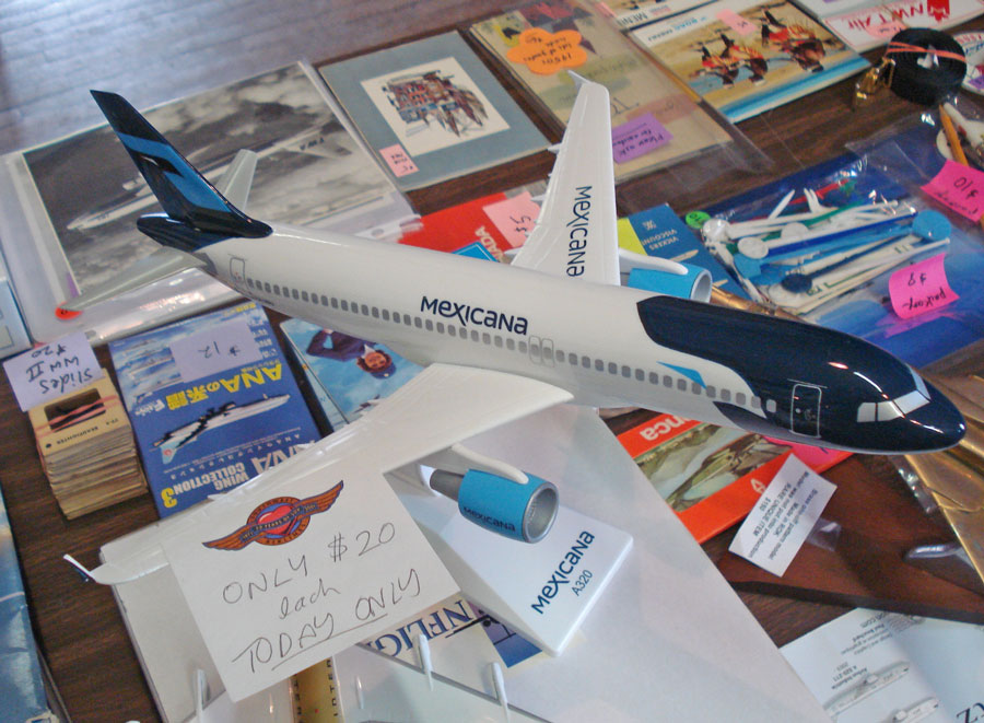 For model collectors, there were a number of reasonably priced airline display models on offer, almost all of which were purchased within the first few hours of the show's 10 am opening to the public. The family of a retired and now sadly deceased former Canadian Pacific Airlines Captain was in attendance, and they had a whole tables of models for sale. One of the nicest models on offer at the show was a 1/60th scale Southern Airways Boeing 737 model, that dated from the 1960s. Price: $800. For the entry level collector just starting out there were 1/100 Mexicana Airbus A320 models for only $20 a piece!