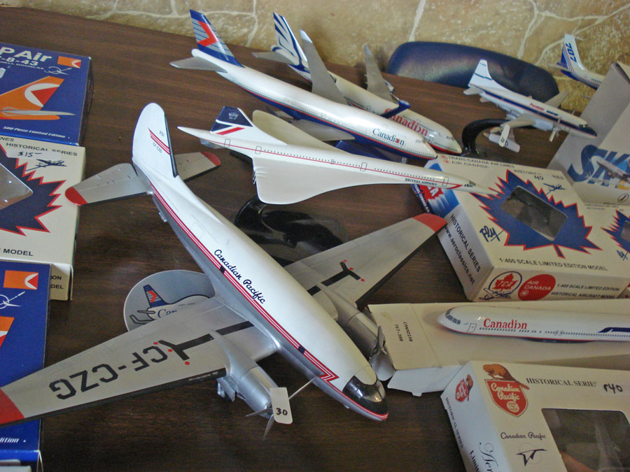 For model collectors, there were a number of reasonably priced airline display models on offer, almost all of which were purchased within the first few hours of the show's 10 am opening to the public. The family of a retired and now sadly deceased former Canadian Pacific Airlines Captain was in attendance, and they had a whole tables of models for sale. One of the nicest models on offer at the show was a 1/60th scale Southern Airways Boeing 737 model, that dated from the 1960s. Price: $800. For the entry level collector just starting out there were 1/100 Mexicana Airbus A320 models for only $20 a piece!