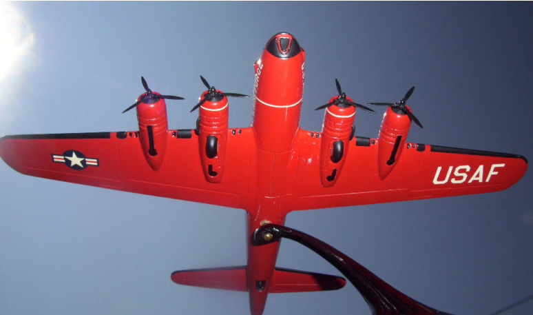 This auction is for a Boeing QB-17 Drone Desk Model. The model was made in the 1950's by either Tenshodo or Nemoto. Both Tenshodo and Nemoto were famous Japanese model makers and they made some of the finest desk models. The model measures 13" wide and 10" long. The model is made out wood and it sits on its original metal stand. The model is in great shape for being 60+ years old. The model has some amazing craftsmanship as all the flight surfaces, fuselage details, and engine details have been carved out. The model is painted just like the actual remote controlled QB-17's that were used as drones for missile testing. The models original propellers were lost some time ago, but the replacements look great. Tenshodo and Nemoto models are very rare and to find another QB-17 would be nearly impossible.